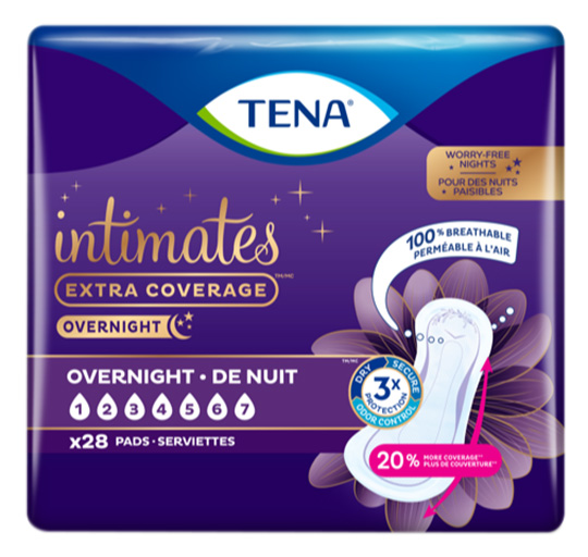 Les serviettes de nuit TENA Intimates permettent de lutter contre l’incontinence urinaire. Elles sont conçues pour vous aider à protéger la sensibilité de votre zone intime. Ces serviettes offrent une triple protection contre les fuites, les odeurs et l’humidité pour vous garder au sec la nuit ou en position couchée. Les serviettes de nuit TENA Intimates sont parfaites pour les femmes qui souffrent de pertes urinaires importantes avec une envie soudaine d’uriner.