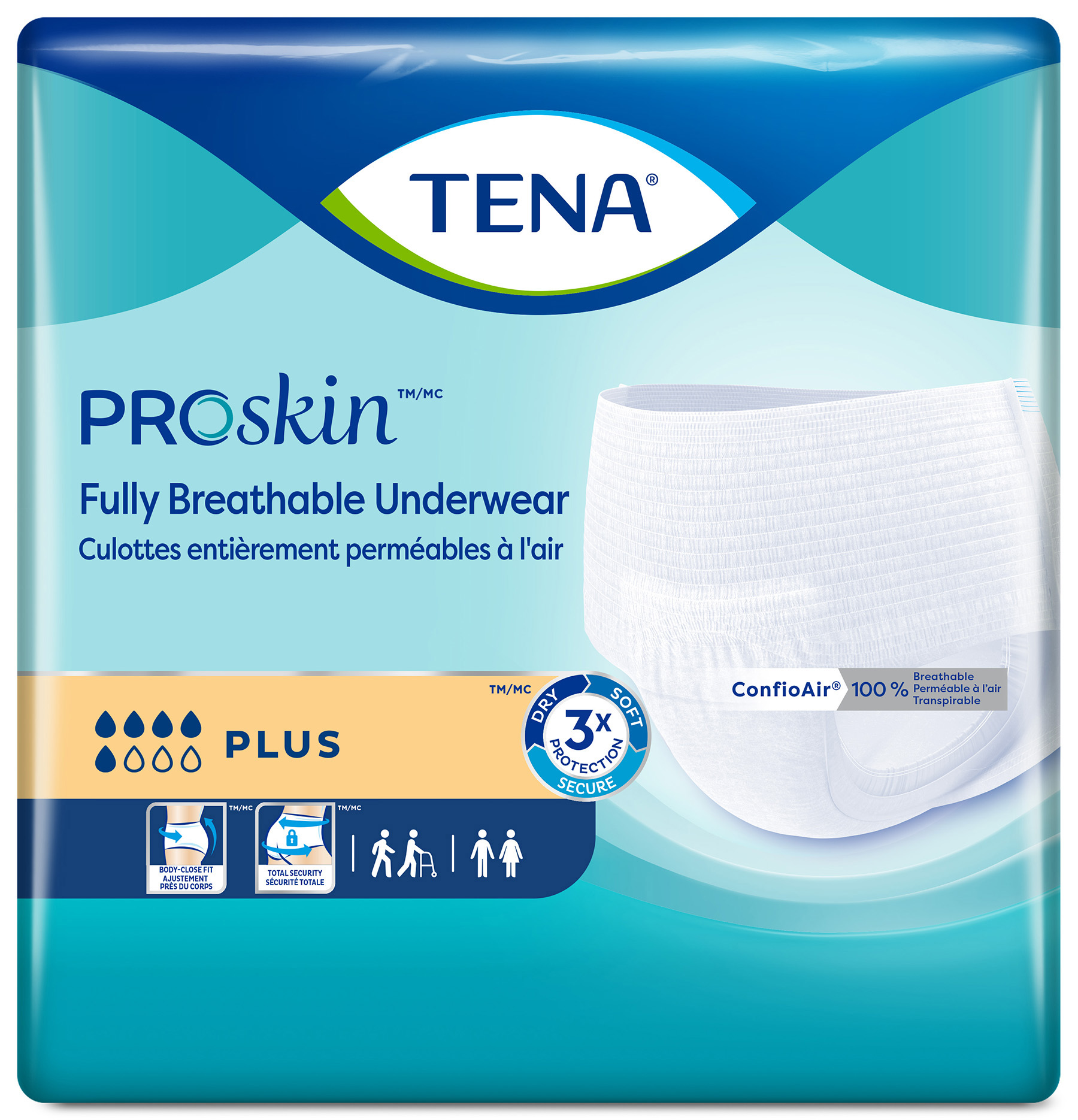 La culotte protectrice TENA ProSkin Plus unisexe est conçue pour vous donner la douceur, le confort et la sensation d’un sous-vêtement ordinaire. Elle offre aux hommes et aux femmes une capacité d’absorption maximale contre les fuites urinaires. Fabriquée à partir d’une technologie innovante, cette culotte protectrice vous permet de profiter de la discrétion, de la sécurité et de la tranquillité d’esprit. Elle est également idéale pour un usage quotidien contre les fuites urinaires.